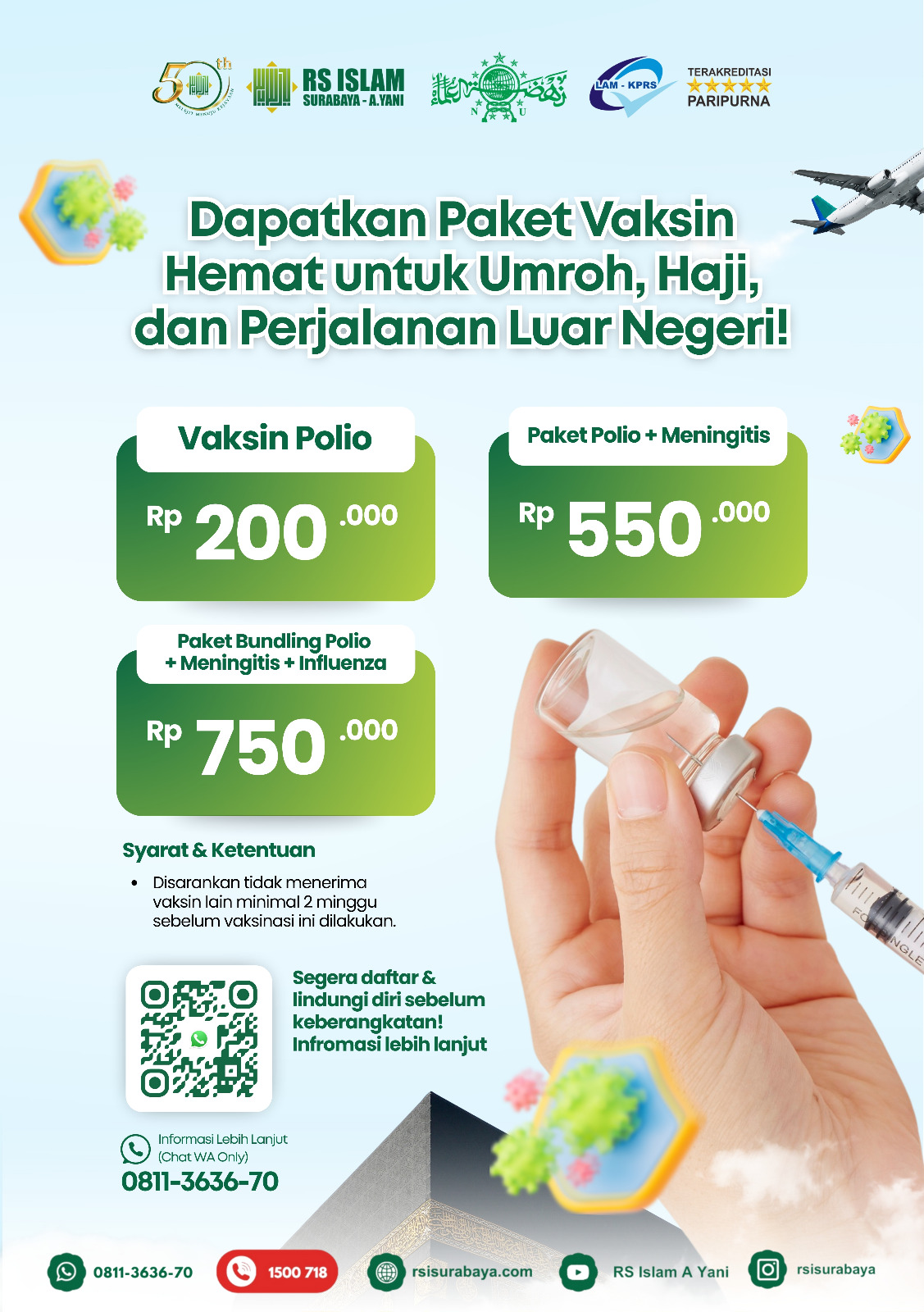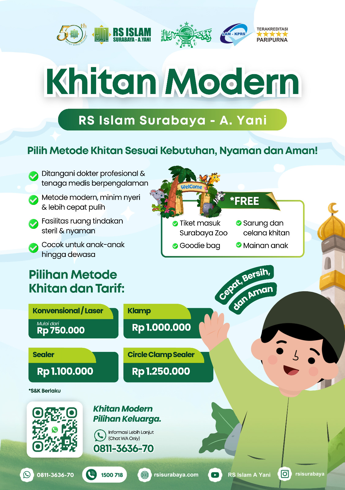 Assalamualaikum Wr. Wb. Saya, Moh Ali Aziz, ingin mengucapkan terima kasih kepada RS Islam Surabaya A. Yani. Saya dan sekeluarga telah berkali-kali berobat di sana dan mengalami perawatan yang professional, sesua standar medis dan prinsip syariah. Dari dulu hingga sekarang, pengalaman saya dan keluarga tetap memuaskan, ditambah dengan kecanggihan fasilitas yang dimiliki RS Islam Surabaya A. Yani. Alhamdulillah, cucu pertama saya telah merasakan kecanggihan itu Ketika patah tulang beberapa bulan yang lalu, ia pulih sepenuhnya dan bahkan Kembali bermain sepak bola. Bahkan, cucu saya mengagumi adanya tradisi mendengarkan doa khatam Al-Qur’an setiap Jumat dan do’a kesembuhan yang menyentuh hati setiap pagi dan sore. Saya sangat menghargai kehebatan dokter dan keramahan perawat di sana. Jazakumullah Khaira, Wassalamualaikum Wr.Wb.
